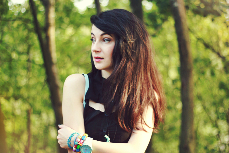 OdpowiedzUsuńLove the combo of the black dress & funky accessories :)