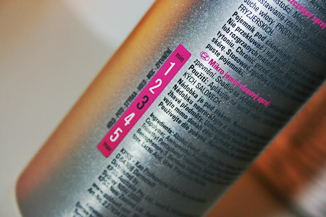 Oczywiście lakier to mój towarzysz, nie obejdzie się bez niego przy takiej ilości włosów. Nie wiem czy to widać na zdjęciach ale jest ich masa, dodatkowo są kręcone i żeby je ujarzmić muszę mocno spryskać lakierem. To mało ważne co robię z włosami, bo każda fryzura wymaga lakieru. Kok żeby wszystko w koło się trzymało, proste włosy, żeby tak szybko się nie podkręcały no i kręcone, żeby się nie puszyły. Lakier jest bardzo wydajny, wielkość średnia butelki, bo to 300 ml jednak mam go już bardzo długo i każdego dnia pryskam nim włosy, no i nadal on tam jest. Więc etap wydajności już za nami, bardzo wydajny. Z tego co się dowiedziałam z opakowania lakier jest nabłyszczający więc nawzajem się uzupełniają z kroplami. Lakier nakładam na całość, krople nabłyszczacza na końcówki. Całość zatem pokryta. Lakier jest 3 jeśli chodzi o skale mocy. Jest delikatny i nie czuć go na włosach, a o to przecież chodzi, żeby go nałożyć i czuć nadal swoje miękkie włosy, a nie warstwę skorupy. Bo nie raz miałam do czynienia z takimi przypadkami. Tak więc to ważne i nr.3 jak najbardziej delikatny i dobrze działający na włosy. Zapach tez przyjemny, bez skrepowania można pryskać nie martwiąc się, że inni domownicy będą krzyczeć.