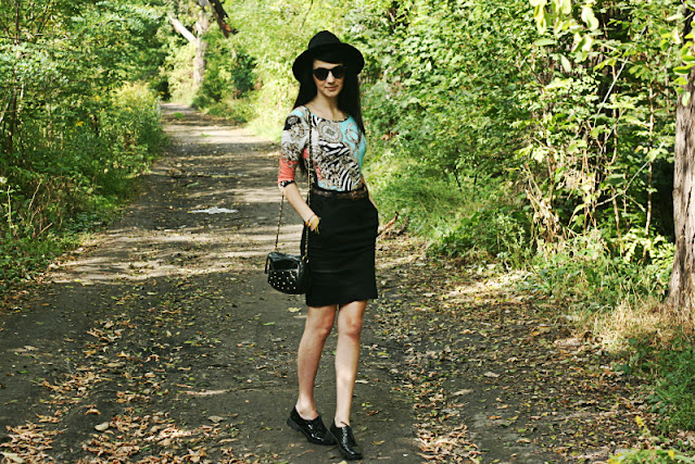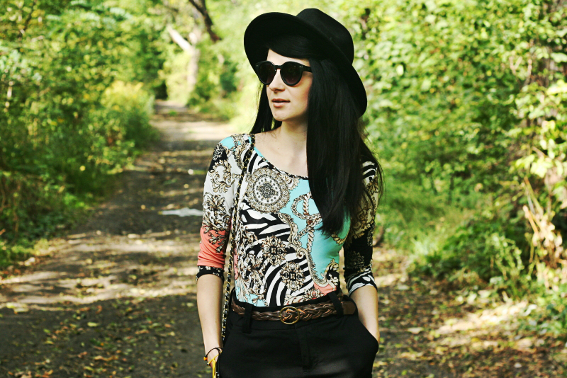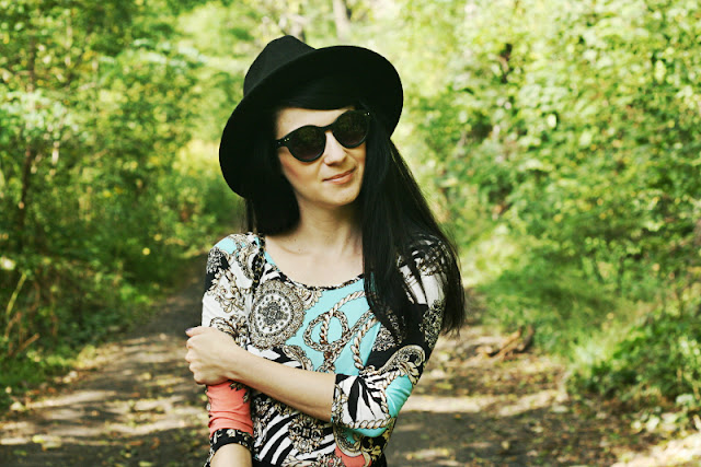 twoja bluzka jest genialna, a te wzory zachwycają! fajnie połączona, a kapelusz dopiął stylizację :)