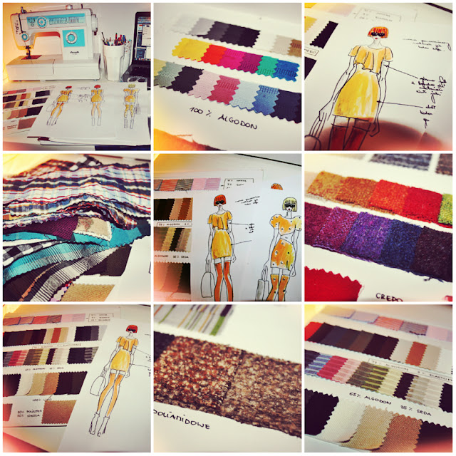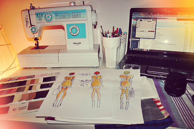 A to moje centrum dowodzenia, tu rysuję, szyję, pracuję. To w tym miejscu spędzam większość swoich dni kiedy mam na głowię masę pracy. To moje projekty do kolekcji dyplomowej, to mój laptop, maszyna i kubek kredek jakie zbierałam przez ostatnie kilka lat. To już etap dobierania materiałów do projektów. Jak tylko zacznę odszywanie wszystko będę relacjonować...
