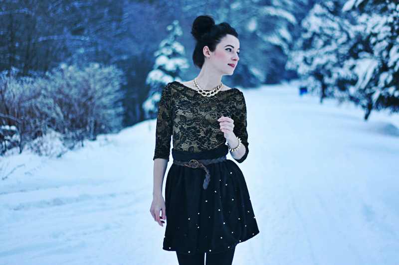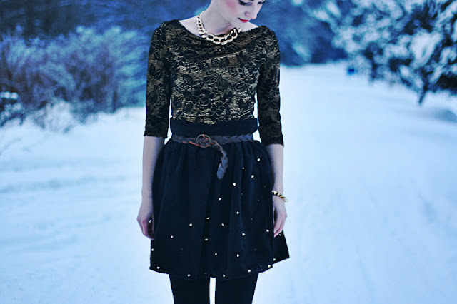 W powietrzu wisi odwilż, a w głowie wisi chaos. Pomiędzy uśmiechem i rozpaczą jestem. Wszystko czeka na zdjęcia, tylko pogoda nie czeka na nas. Jutro moje plany i całą kolekcję zapiszę pikselami, pojutrze zaniosę do druku, a w czwartek za tydzień sąd ostateczny i obrona dyplomowa. Dziś ostatni raz, zanim odwilż zapanuje nad naszym śniegiem, spakowaliśmy deski i męczyliśmy się przez kilka dobrych godzin na stoku. To był dobry dzień! A po tym wszystkim wskoczyłam w ulubione botki i spódnicę.
