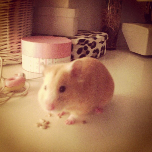 Ja i moje żyjątko, Chomik jaki uwielbia herbatę z cytryną, sernik, orzechy nerkowce, tulić się, no i jak tylko usłyszy, że coś jem jest w kilka chwil obok mnie ♡ mój pokój to jego pokój.