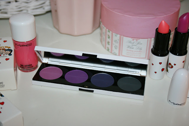 Najpierw szminki. Moim wymarzonym kolorek była szminka Betty Bright, to ta brzoskwiniowa. Jak tylko zobaczyłam ją w zapowiedziach kolekcji marzyłam, żeby ją mieć. Drugi kolor to odcień od Veroniki, Daddy's Little Girl. To taki piękny ocień fioletu. Szminki jak na MACa przystało są najlepsze! Nawilżanie i mocny kolor idą w parze. Do tego te piękne opakowania białe w serduszka z buziami bohaterek. Genialne!