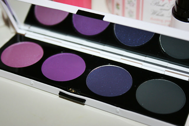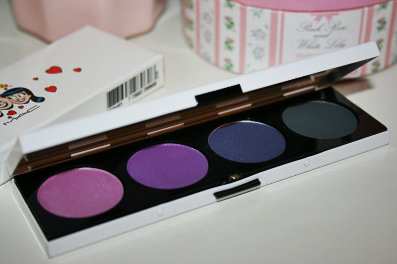 Paletka! O tak, fiolety i róże mieszają się tu z granatem i szarością. Idealna paleta do wykonania zdecydowanego i mocnego wieczorowego makijażu. Cienie zamknięte w kasetce oczywiście sygnowanej logiem kolekcji z komiksowym motywem. Kasetka jest sporej wielkości także wystarczy na bardzo długo. Już nie mogę się doczekać lata i tych długich wieczorów, wtedy makijaż wieczorowy będę robić o wiele częściej. Zwłaszcza teraz gdy jestem posiadaczką takiej paletki.