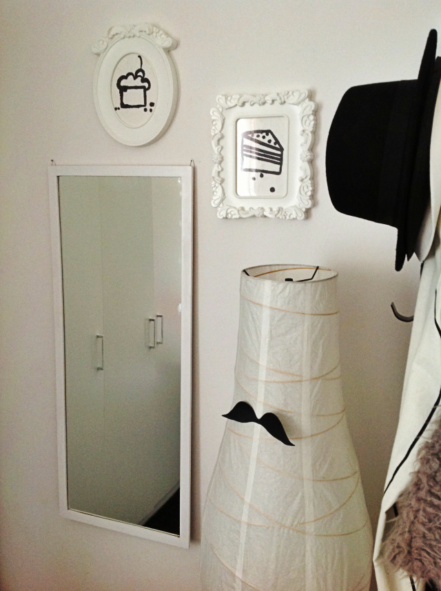 Ramki uwielbiam, a w nich ciastkowe motywy. No i DUDERKO lampa do jakiej dokleiłam wąsy :)