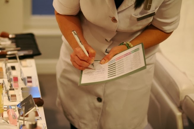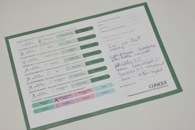 Na wstępie przywitała mnie przesympatyczna Pani Kasia, która ma w sobie tyle uroku, że jak opowiadała nam o kosmetykach CLINIQUE to nie można było oderwać od niej oczu i tak słuchałyśmy o coraz to nowszych zagadnieniach. Byłam pod wielkim wrażeniem. Najważniejszy był moment, kiedy trafiłam do Pani Wandy, która przeprowadziła, ze mną taki wywiad. Opowiedziałam co sprawia mi trudności w makijażu, jakie mam problemy z cerą i przeszłyśmy do najlepszego, mianowicie MAKIJAŻU!