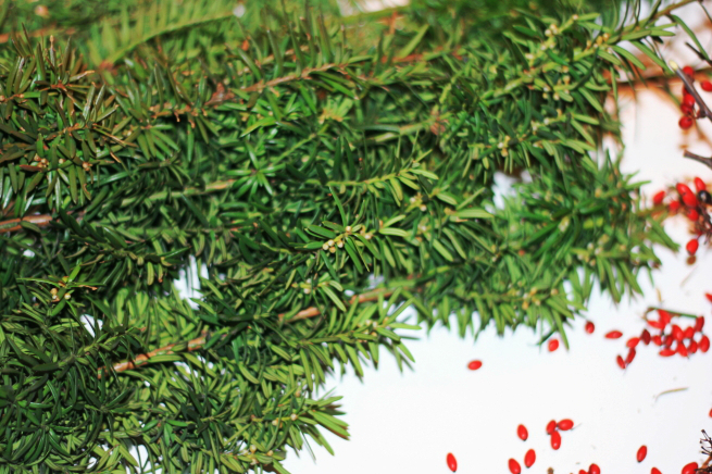 Na koniec zielone gałązki przeplatamy czerwonymi.