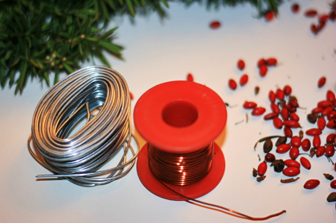 Z drutu zwijamy okrąg, do którego przymocowujemy najpierw zielone gałązki.
