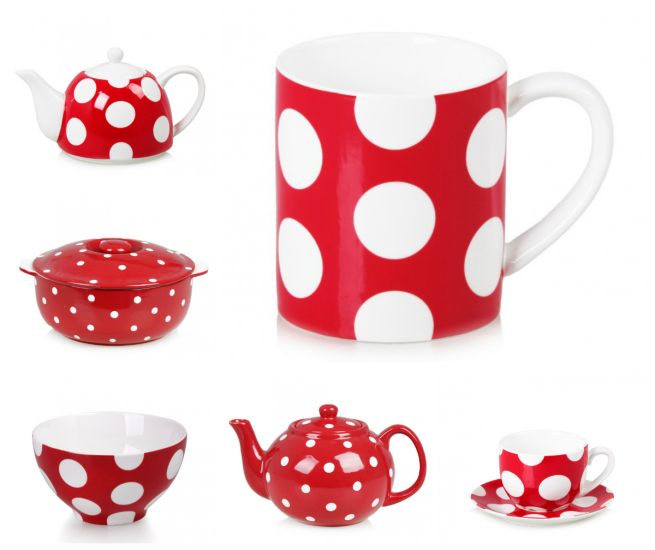Czerwony zestaw w kropki to coś dla mam, które nie boją się kolorów. Ja z czerwonym bardzo uważam i stosuję go raczej w pojedynczych elementach, jednak nie raz wzdychałam do kuchni w czerwonym kolorze.