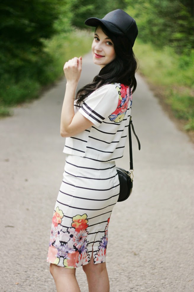 przepięknie! ta spódnica jest genialna :) fajnie, że przełamałaś całość tą czapuchą z daszkiem! :)
