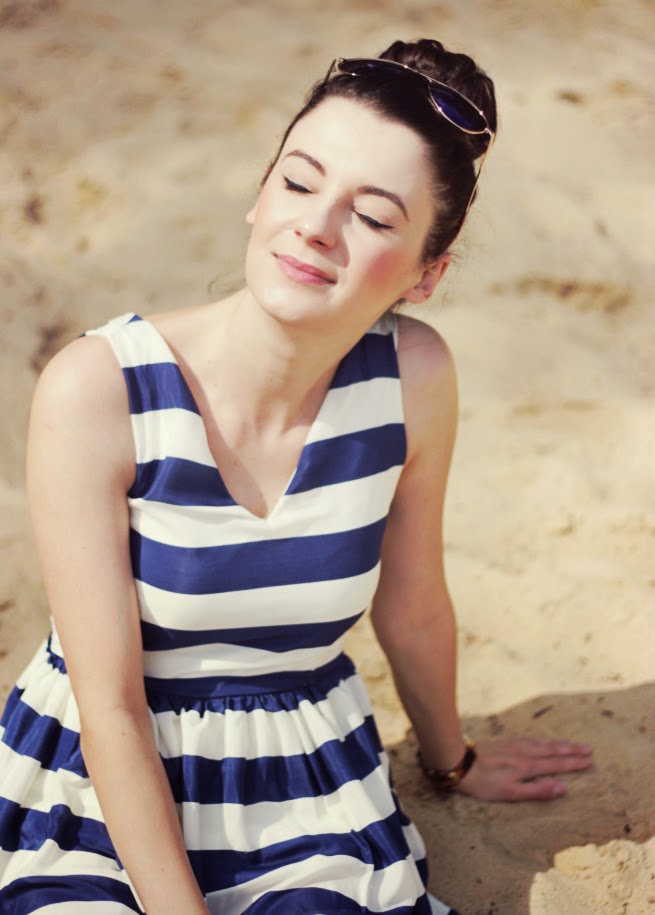 te okulary są idealne do tej sukienki :) pięknie wyglądasz i super zdjęcia :) no i prześlicznie Ci w paseczkowe wzory :)