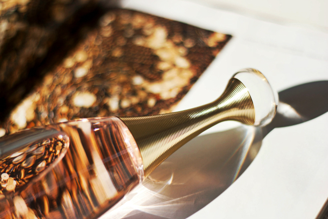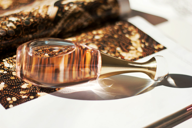 Flakon w kształcie amfory, zdobiony złotą nakrętką nie musi nosić nazwy, zbędne są wszelakie sygnowania. On broni się sam i każdy go zna. Każdy doskonale wie, że to Dior J'adore. Sam kształt amfory nawiązuje do słynnej dla New Look linii „8”, która zrewolucjonizowała świat mody, akcentując biodra i podkreślając talię, jednoznacznie podkreślając absolutną kobiecość.