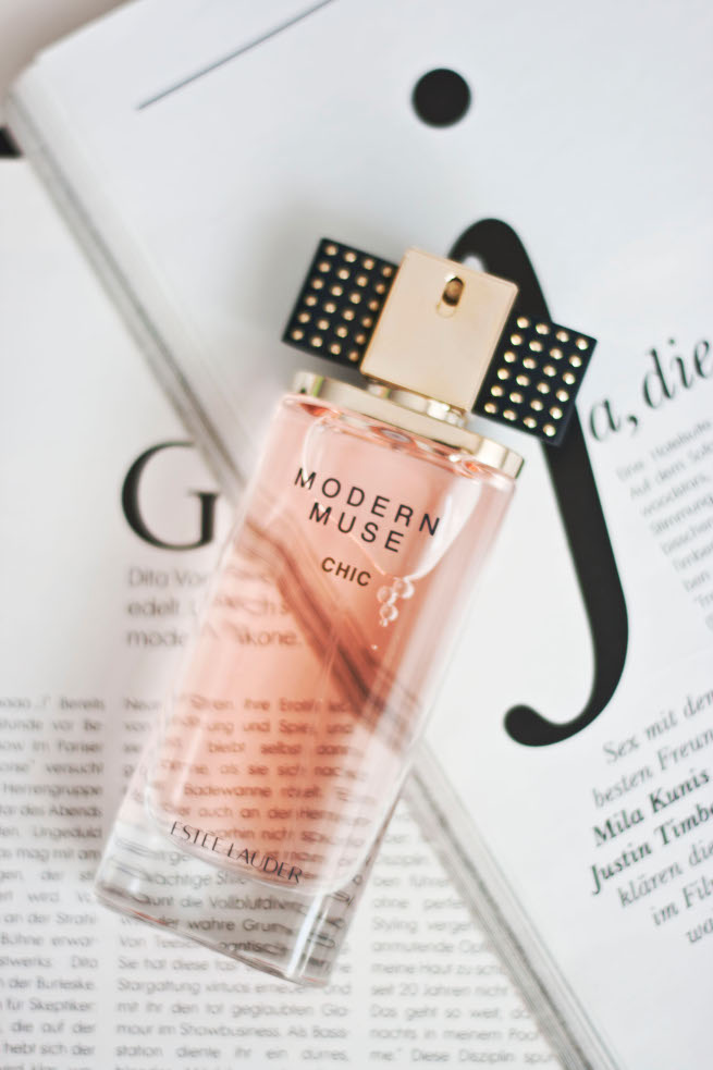 Modern Muse CHIC od Estee Lauder to zapach subtelny, świeży i ambitniejszy od pierwowzoru. Nutami głowy są śliwka i dzięgiel, nutami serca są jaśmin wielkolistny, tuberoza i lilia stargazer, nutami bazy są drzewo kaszmirowe, agar (oud), labdanum, paczula, heban, piżmo, madagaskarska wanilia i zamsz. Dzięki takiemu składowi zapach MODERN MUSE CHIC ma taką siłę przyciągania. Całą kwiatową kompozycję przełamuje odważny drzewny akord. W całym tym zamieszaniu na pierwszy plan wysuwa nam się kwiatowe oblicze, które tworzy w składzie jaśmin wielkolistny, kwiat tuberozy oraz lilia stargazer. Do tego akcent śliwki oraz davany dodaje mu jeszcze więcej charakteru. Na drugiej linii doszukamy się drzewnego wyrazistego akordu hebanu, połączonego z drewnem kaszmirowym, drewnem agarowym i labdanum. Dopełnione paczulą, która nadaje wyrazistości i siły całej tej mieszance. To jeden z najlepszych zapachów jaki miałam. Ciężko mnie przekonać do nowych nieznanych mieszanek i mimo wszystko na mojej toaletce mieszka 6 flakonów. Wszystkie coś łączy i wiąże. Perfumy MODERN MUSE w tej jak i w klasycznej formie przemawia do mnie w 100%. Znalazłam dla niego przeznaczenie na chłodne dni, wręcz mroźne aby otulać się ciepłem w postaci zapachu. Po rozpyleniu mammy mocną mieszankę intensywnego zapachu, która z czasem opada i pozostawia na skórze kwiatowo-owocową delikatność.