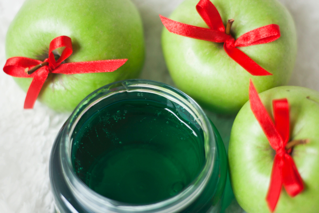 Galaretka do kąpieli aż prosi się o dołączenie łyżeczki, żeby je spróbować. Kusi zapachem i konsystencją. Niestety zamiast cieszyć podniebienie sprawia, że w naszej wannie pachnie glazurowanym jabłkiem, skóra staje się miękka i przyjemna w dotyku, a zapach unosi się za nami jeszcze długo.