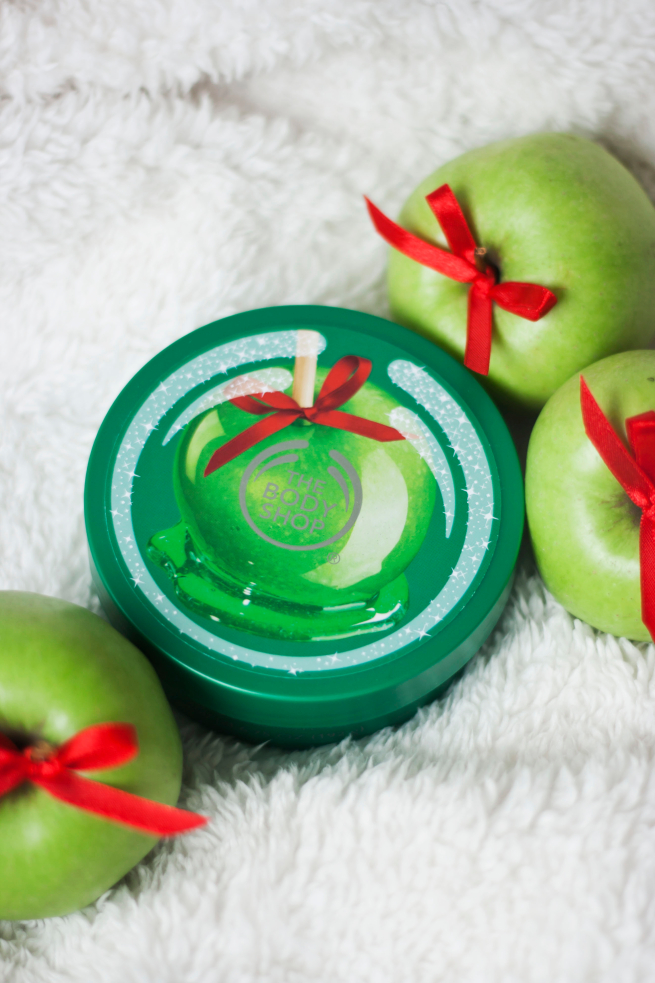 Co roku w okresie świąt THE BODY SHOP poszerza swój asortyment o nowe, specjalne zapachy. W zeszłym roku królował imbir i żurawina. Tym razem na półkach pojawiło się kandyzowane jabuszko. Jak wiele znam zapachów z THE BODY SHOP tak jabuszko zdecydowanie jest najlepszym tworem na święta.