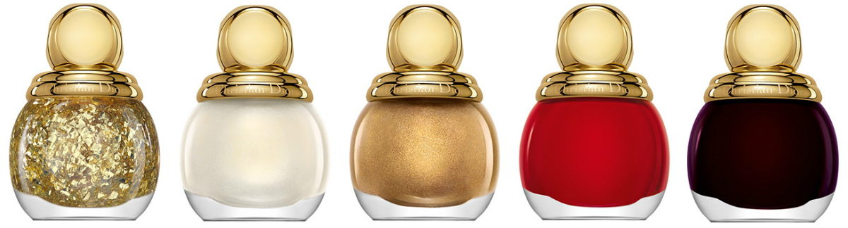 Seria świąteczna to także 5 niesamowitych lakierów do paznokci. Pierwszy to Top coat dający efekt złoty powłoki, reszta to już świetliste refleksy zatopione w efektywnych buteleczkach. Na pierwszy rzut oka zupełnie nie przypominają lakierów, a jakieś cudowne eliksiry. Ich odcienie to: