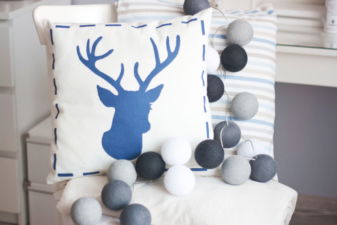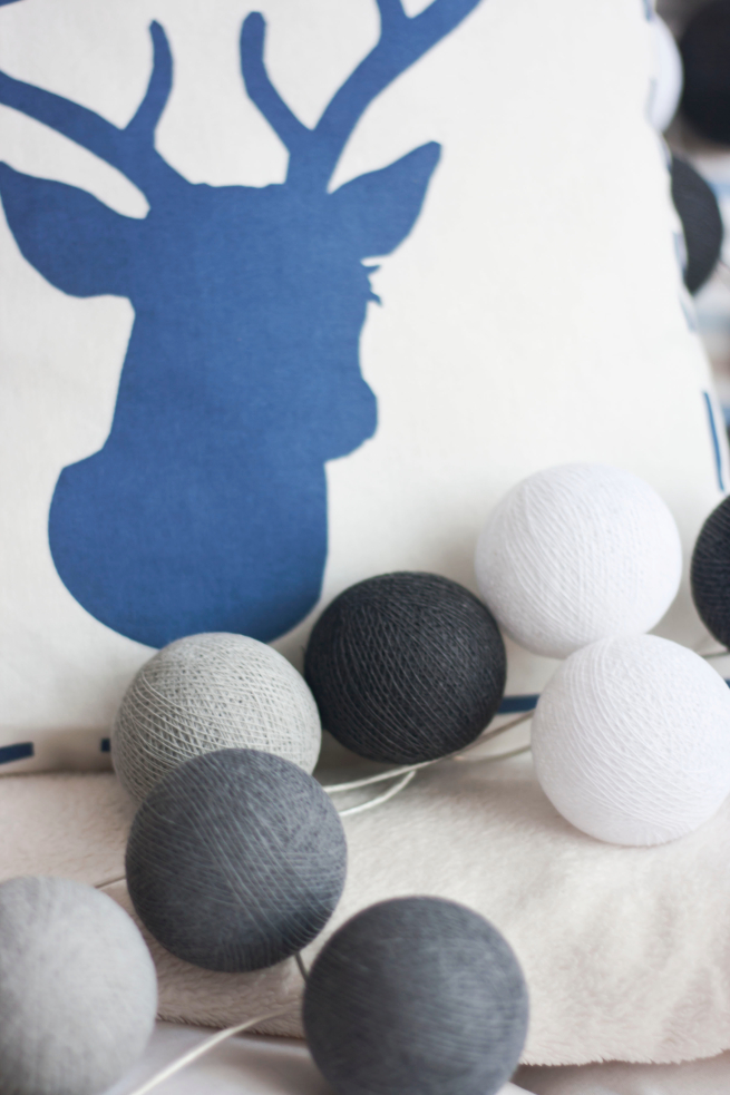 Cotton Ball Lights to idealny sposób na dodanie świątecznej atmosfery w naszych domach. Ciepłe światło jakie możemy uzyskać dzięki nim sprawia, że w domu zaczynamy czuć świąteczną atmosferę. Do tego kilka poduszek z motywem reniferów i gotowe. Zobaczcie moje nowe lampki...