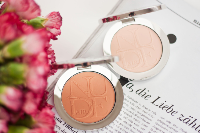 Na zdjęciach powyżej odcienie są nieco podobne, dlatego postanowiłam zestawić je obok siebie tak abyście zobaczyły jak duża różnica jest między nimi. Puder Dior Nude Air Pudre Compact w kolorze 020 LIGHT BEIGE wygląda pięknie blado, a Diorskin Nude Air Tan Powder w odcieniu 002 ociepla naszego bladziocha. Idealnie te dwa odcienie się uzupełniają na naszej buzi.