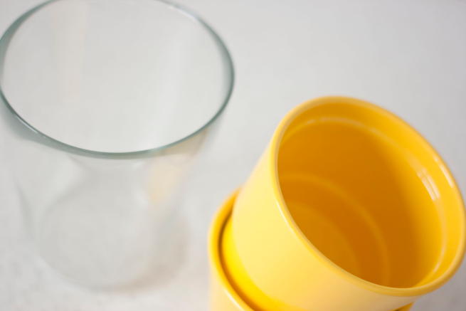 Z myślą o Wielkanocy kupiłam mocno żółte osłonki, żeby pasowały do moich wielkanocnych królików. A zielona bazylia i melisa będą pięknie wystawać ponad nie. Przezroczysta osłonka będzie na żonkile albo żółte tulipany.