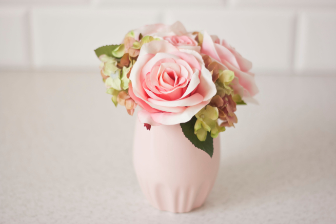 Nie jestem fanka sztucznych kwiatów, jednak w kuchni żywe wogóle się nie sprawdzają. Bardzo szybko się rozwijają od temperatury i szybko więdną. Zatem taki mały bukiecik dodaje uroku i cały czas wygląda świeżo. Te pochodzą z HOME&YOU.