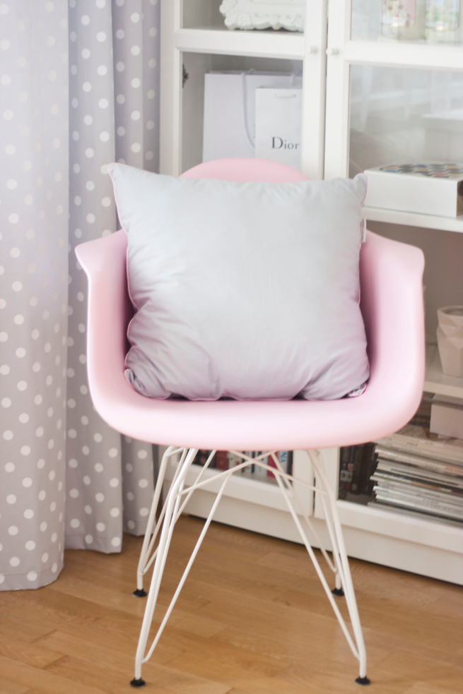 Ostatnim takim miłym akcentem jest podusia idealnie pasująca do zasłon i krzesła, w takie pochmurne dni zamieniam białe krzesło z jadalni na różowe, żeby przy stole było kolorowo. Poducha jest niezwykle miękka, a krzesło idealne po ciężkim dniu. Chyba nie znam wygodniejszego :)