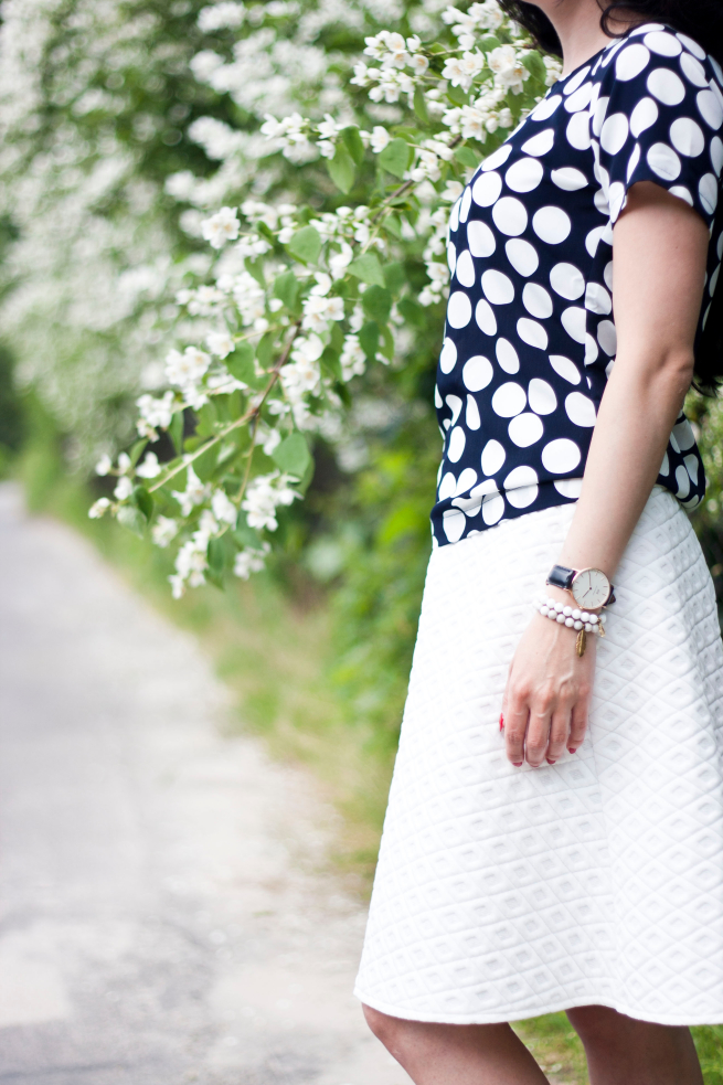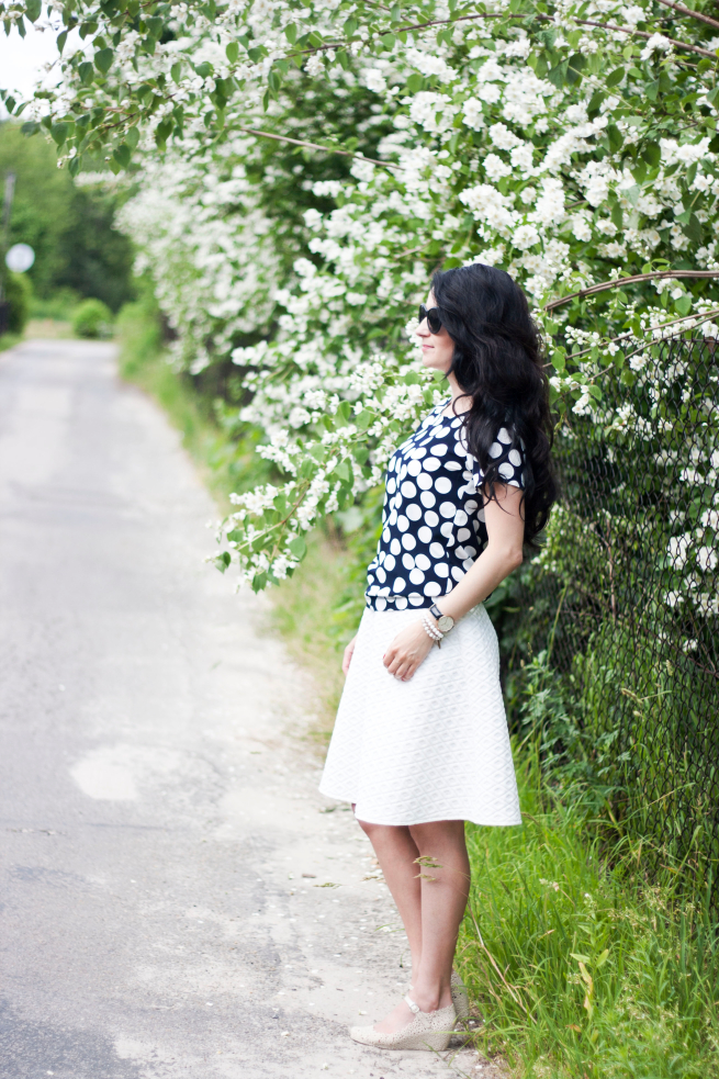 Piękne zestawienie grochów ze spódnicą wytłaczaną, cudnie wygladasz :) Ja przestałam planować, biorę życie takim jakie jest, bo nie na wszystko mamy wpływ :) pozdrawiam