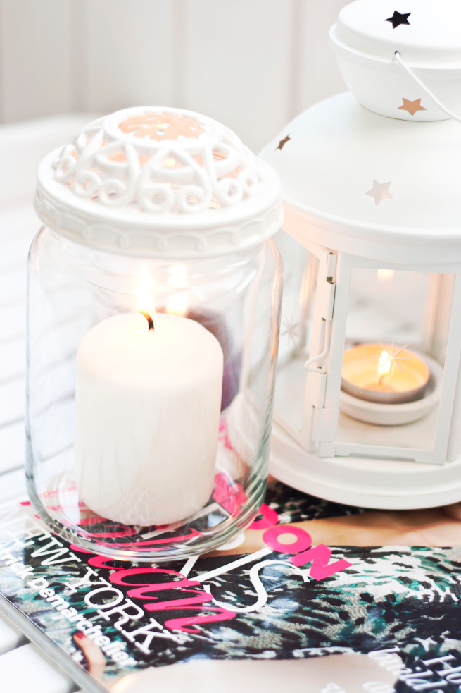 Na balkonie mam także lampiony i świece. Zapalam je wieczorem i pachnie także i tam, a zapach razem z powiewem powietrza wpada do domu. Bardzo polecam. Jeśli natomiast nie chcecie tracić ulubionych świec, bo wolicie je zużywać w pomieszczeniach zamkniętych to polecam z pustego słoja po YANKEE CANDLE zrobić taki lampion jak ja. Wystarczy ILLUMA założona na górę i wygląda to pięknie.