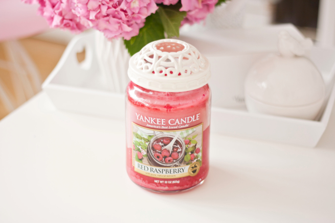 Na sam koniec zostawiłam najlepsze - nową świecę Yankee Candle! Tym razem malinowa. W zeszłym roku paliłam świecę w czerwonym kolorze o zapachu jabłka i była piękna, poszłam za ciosem i wybrałam malinę. To zdecydowanie dobry wybór, świece w czerwonym kolorze z Yankee pachną bardzo soczyście, słodko i pięknie. Koniecznie zobaczcie nowe zapachy na stronie www.homedelight.pl. Jest tam kilka nowych zapachów z USA, praktycznie niedostępnych w Polsce.