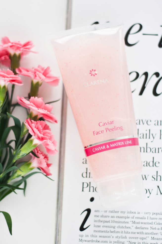 Tak to jest mój ulubiony produkt z CLARENY od bardzo dawna! Kawiorowy peeling do twarzy z drobinkami. świetnie się rozprowadza na naszej skórze. Cudownie pachnie. Co najlepsze doskonale czyści i nie pozostawia tłustego filmu po umyciu. Jest bardzo wydajny, bowiem miałam kilka razy tubki, które były jedynie maluteńkimi testerami i wystarczały na bardzo długo. Tak tuba pełnowymiarowa jest jak studnia bez dna.