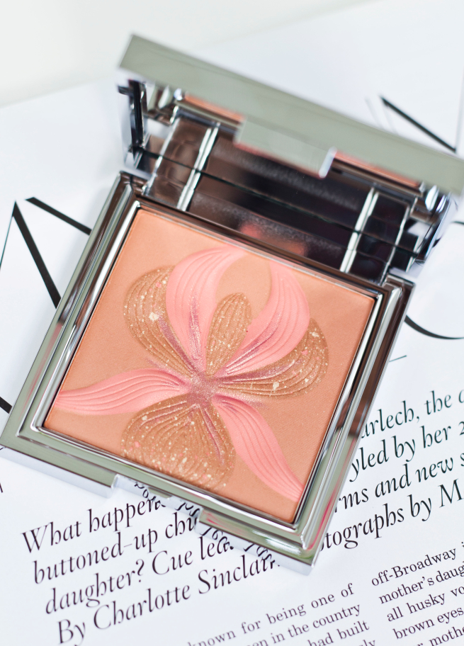 Środek to kolejny powód do zachwytów. Brzoskwiniowa tonacja wpisuje się doskonale w moją wizję makijażu latem i nieco po lecie. Kiedy daleko nam do bladości, a na twarzy widać nadal muśniętą skórę słońcem. Róż doskonale modeluje, nadaje świeżości i sprawia, że skóra wygląda na gładszą i jednolitą. Dedykowany do każdego rodzaju cery i na każdą porę roku. Odcień koralowy załamany został brązem i przeplata złotawe drobinki. Niesamowicie wydajny, mimo częstej aplikacji nadal widać kształt i zarys Orchodei.
