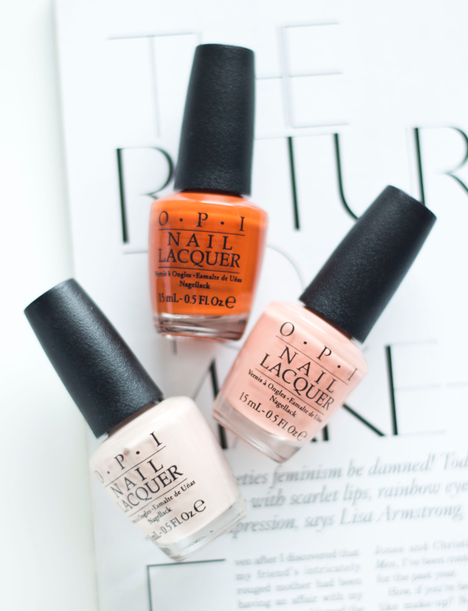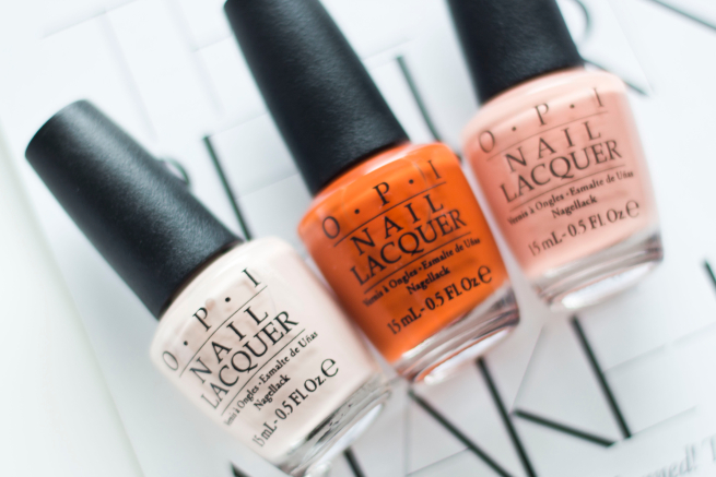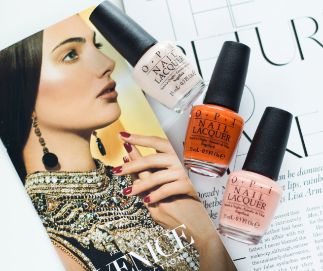 Moje 3 kolory OPI z kolekcji VENICE to odcienie DYNI jak to nazwała moja siostra. Nałożyłam je oczywiście wszystkie na raz. Uwielbiam mieszać odcienie pastelowe z tymi intensywnymi oraz jakimiś przepełnionymi drobinkami. Lakiery OPI w połączeniu z BAZĄ i TOPem OPI trzymają się ponad tydzień bez występujących odprysków.