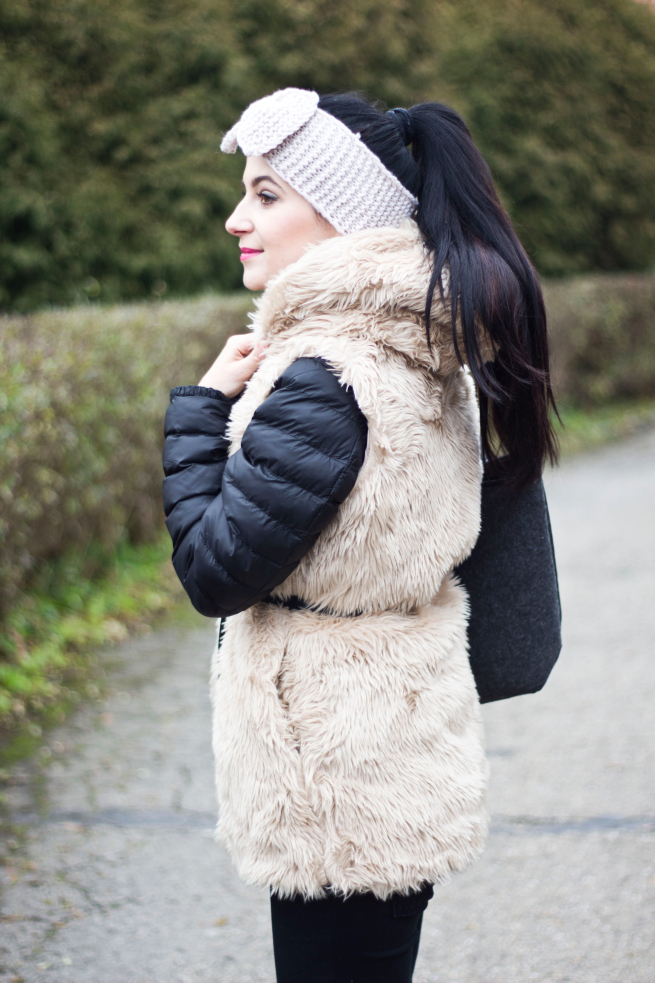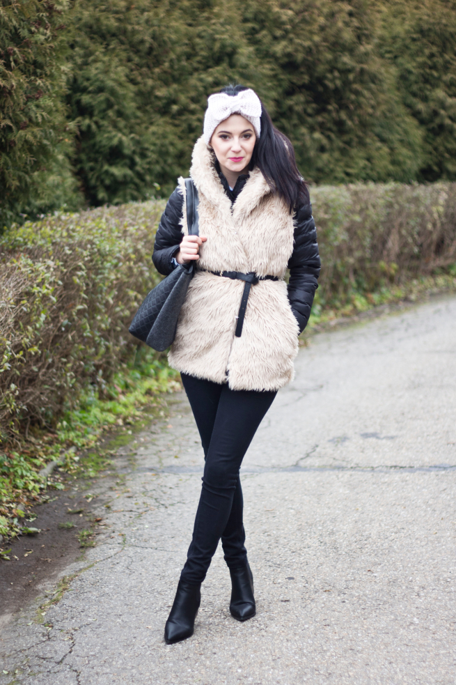 Piękny zestawik! Uwielbiam futrzane kamizelki!