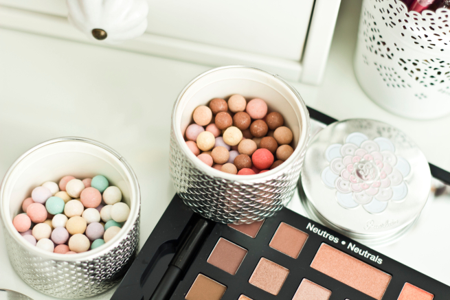 Potrzebujemy dużej palety cieni, oczywiście i tak skończymy na 3 ulubionych stałych odcieniach, ale jakby czasem coś nas tknęło na szaleństwo to warto mieć pod ręką coś co zrealizuje naszą wizję. U mnie tym razem padło na SZAROŚCI oj zdumienie ogromne, bowiem ja używam od zawsze tylko brązów. Także warto zainwestować w wielka paletę bo czasem pokusa okazuje się doskonałym rozwiązaniem aby wyczarować na naszych twarzach coś NOWEGO. Moja paleta pochodzi ze światecznej limitowanej serii SEPHORY i aktualnie jest w promocji za UWAGA 99ZŁ! Kolejny etap to moje doskonałe kuleczki Meteorites GUERLAIN. Po pierwsze zamówiłam ciemny odcień 03 DORE i byłam bardzo zła, nawet stwierdziłam, że to strata pieniędzy, że nie rozumiem zachwytu, Jednak ciekawość nie dawała mi spokoju i postanowiłam nie poddawać się i złożyłam kolejne zamówienie tym razem na odcień 02 CLAIR i zakochałam się w nich po raz pierwszy. Są doskonałe do ostatniego wykończenia makijażu. Nadają trójwymiarowości. Znika efekt płaskiej twarzy, który znacie po użyciu pudru sypkiego czy prasowanego. A kolor 03 DORE pokochałam w jego nowej roli - bronzera! Dziś bez meteorytów nie wyobrażam sobie makijażu.