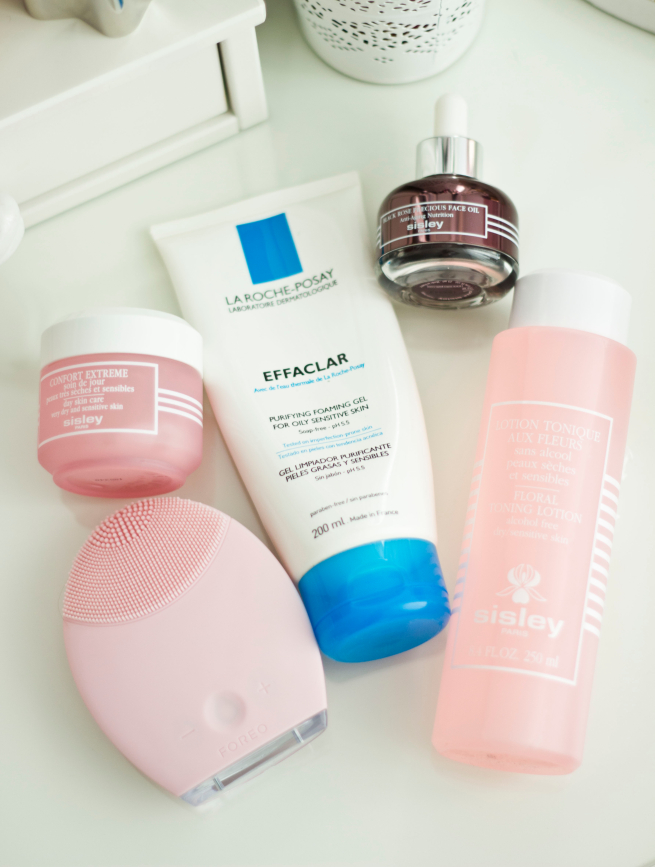 Tu z pomocą od lat przychodzi żel LA ROCHE POSAY EFFACLAR. Wystarcza na bardzo długo, a słowo ''bardzo'' powinno zawierać cudzysłów, bo produkt się nie kończy i jakby go nie ubywało w tej białej tubie. Działa świetnie na wszelakie niespodzianki i pozwala się z nimi uporać w szybkim czasie. Duet z żelem stanowi tutaj szczoteczka soniczna LUNA FOREO, która masuje i doskonale ściera naskórek.