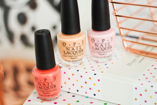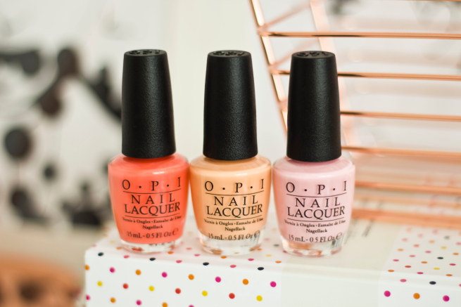 Trzy pierwsze lakiery do paznokci to SPF XXX, w pięknym oranżowym tonie. Nazwy nakierowują nas na to czego nie może zabraknąć latem, a przewrotnych sformułowań w OPI nigdy nie brakowało. Delikatny pastelowy odcień brzoskwini to I'M GETTING A TAN-GERINE. Na końcu urocza perełka w postaci różowego WHAT'S THE DOUBLE SCOOP.