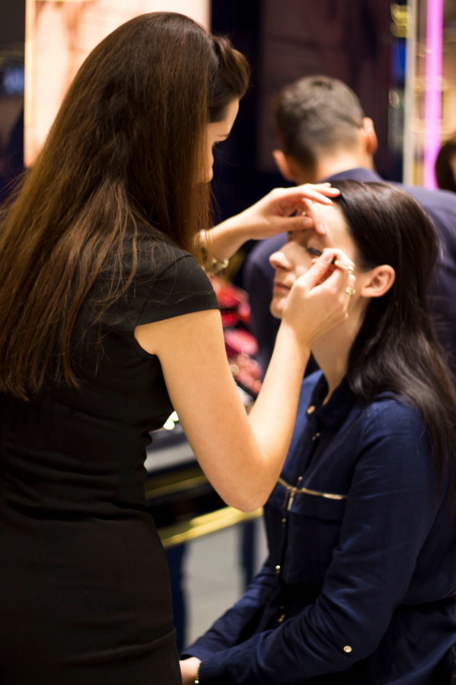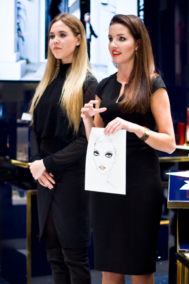 Mój makijaż to look Paryski, czarna kreska na oku, mocno podkreślone usta. Kosmetyki z kolekcji Victorii Beckham zachwycają. Razem z Justyną zmieniłyśmy nieco odcień szminki, chciałam bardzo sprawdzić coś mocniejszego, ciemnego - idealnego na jesień. Kolekcja Victorii zachwyca, rozświetlacz, matowy bronzer oraz serum to moje 3 hity! Szminki w dwóch doskonałych kolorach także przyciągają.