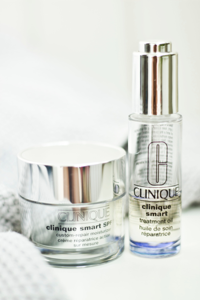 W ciągu dnia coś lżejszego, ale nadal działającego inteligentnie. To krem dzienny z filtrem SPF15 oraz olejek. Aby mocno wypielęgnować naszą skórę w ciągu dnia i chronić przed niszczącym promieniowaniem słonecznym to mój hit. CLINIQUE SMART na dzień w postaci kremu o ciężkiej, bogatej konsystencji, mocno regenerujące, działające na oznaki starzenia. Do tego kilka kropli do podkładu olejku CLINIQUE SMART, aby wyglądał naturalniej, lekko, oraz aby makijaż stanowił też formę pielęgnacji.